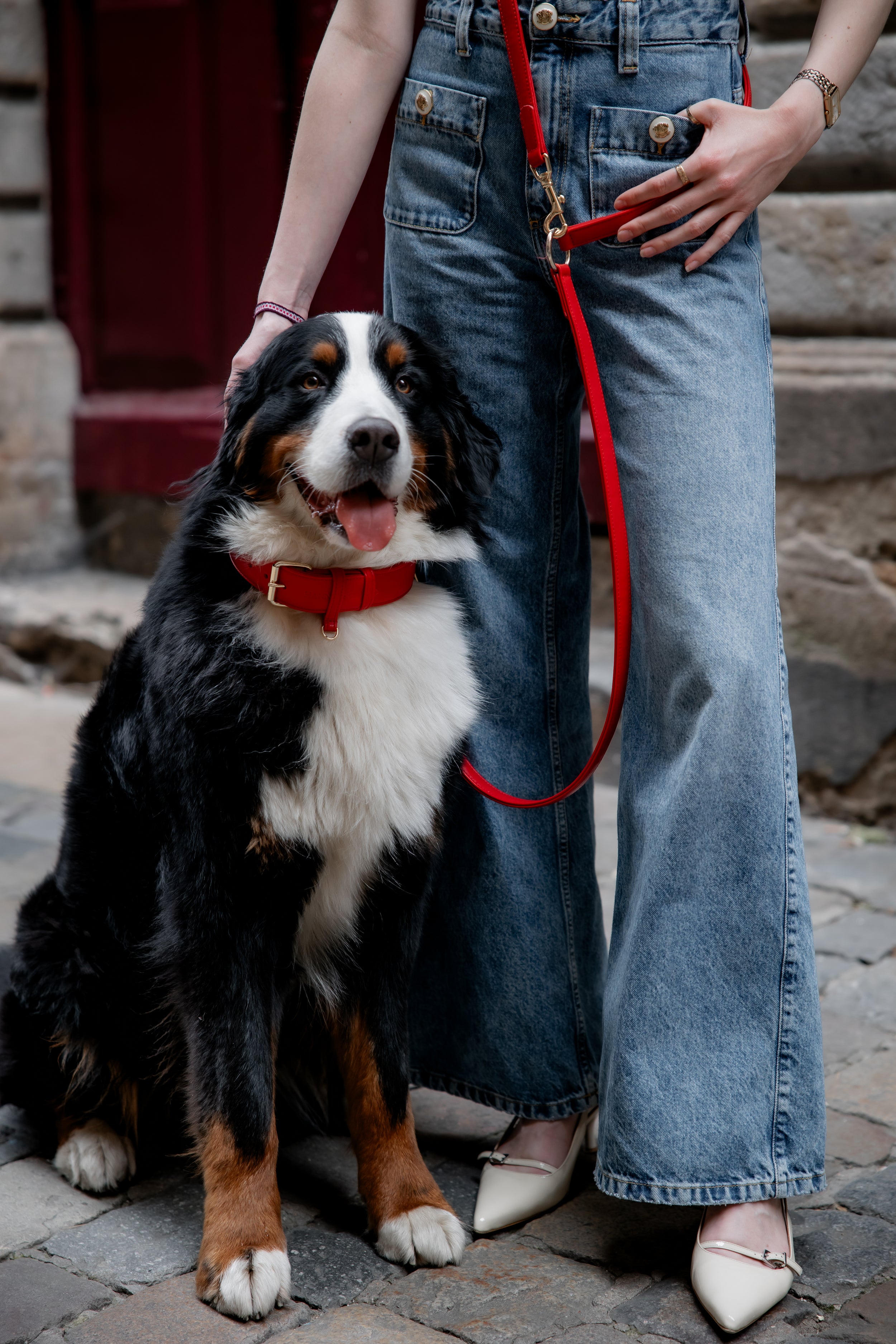 Chez Hanny & Co, nous créons des accessoires haut de gamme pour chiens — colliers et laisses fabriqués à partir de cuir végétal issu de résidus d’olive.